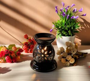 Pure Source India Ceramic Clay Candle Operated Aroma Burner (Black, 4 Inch)
