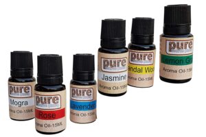 Pure Source India Aroma Diffuser Oil (Lavender, Lemongrass, Rose, Jasmine, Sandalwood and Mogra), 15ml Each, Multicolour – Set of 6