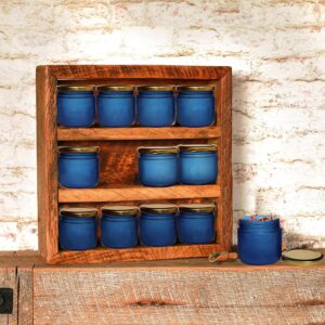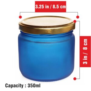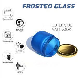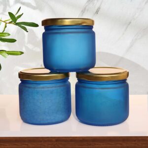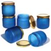 A blue-colored glass container that has an airtight seal and a rust-resistant metal lid, and is typically used for storing items like food, spices, or small household goods. The container has a capacity of 150 grams, making it compact and ideal for storing smaller quantities.