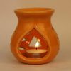 Pure Source India Ceramic Aroma Burner Regular Orange Color with 10 ML Rose Aroma Oil and 4 Tea Light Candle (Oil Burner Set)