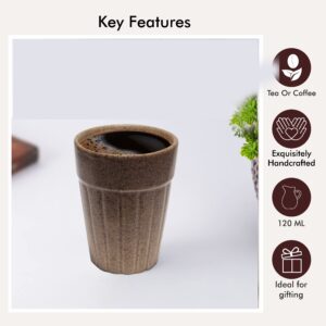 Pure Source India Ceramic Cutting Tea/Chai Cups | 120 ml| Hot & Cold Coffee Mug, Milk & Tea Cup Set (6 Pcs, Matt Grey)