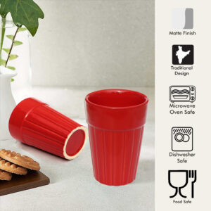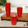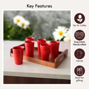 Pure Source India Ceramic Cutting Tea/Chai Cups | 120 ml| Hot & Cold Coffee Mug, Milk & Tea Cup Set (6 Pcs, Red)