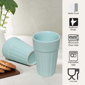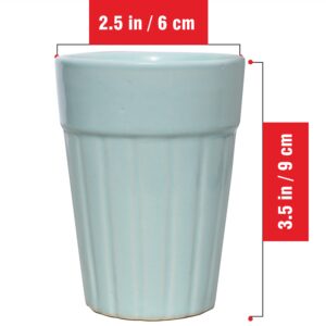 Pure Source India Ceramic Cutting Tea/Chai Cups | 120 ml| Hot & Cold Coffee Mug, Milk & Tea Cup Set (6 Pcs, Sea Green)