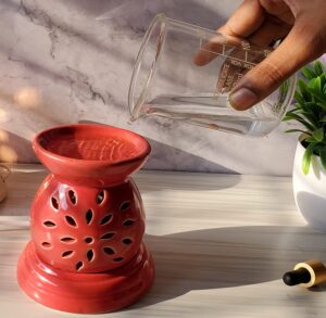 Pure Source India Ceramic Electric Aroma Diffuser Matka Shape Burner with Bulb (Red- with 10 ml Relaxing Aroma Oil