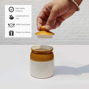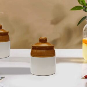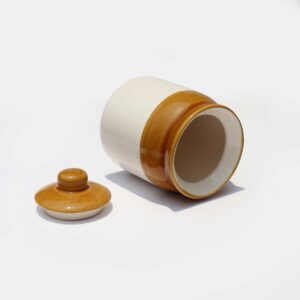 Bring home a piece of tradition with this Ceramic Ivory & Brown Pickle Jar (250ml), perfect for storing your favorite Indian pickles, masalas, or kitchen essentials. Designed with both functionality and charm in mind, this handcrafted barni is made from high-quality ceramic and finished with a non-toxic glaze to keep your food safe and fresh. The 250ml capacity makes it ideal for small households or serving a variety of condiments. Whether you’re organizing your spice shelf or adding a rustic touch to your table, this ceramic jar blends utility with timeless elegance.