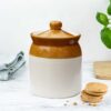 Bring home a piece of tradition with this Ceramic Ivory & Brown Pickle Jar (850ml), perfect for storing your favorite Indian pickles, masalas, or kitchen essentials. Designed with both functionality and charm in mind, this handcrafted barni is made from high-quality ceramic and finished with a non-toxic glaze to keep your food safe and fresh. The 850ml capacity makes it ideal for small households or serving a variety of condiments. Whether you’re organizing your spice shelf or adding a rustic touch to your table, this ceramic jar blends utility with timeless elegance.