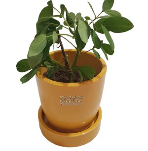 Pure Source India small sized plant pot assorted with tray/ coasters. These plant pots are also perfectly suitable for indoor plantation, decorating your balconies, etc. Also, small size, light weight makes these plant pots wonderfully convenient to move from one space to another. These plant pots are made from high grade ceramic, giving it a tuff and solid body, with a simple cum beautiful design.