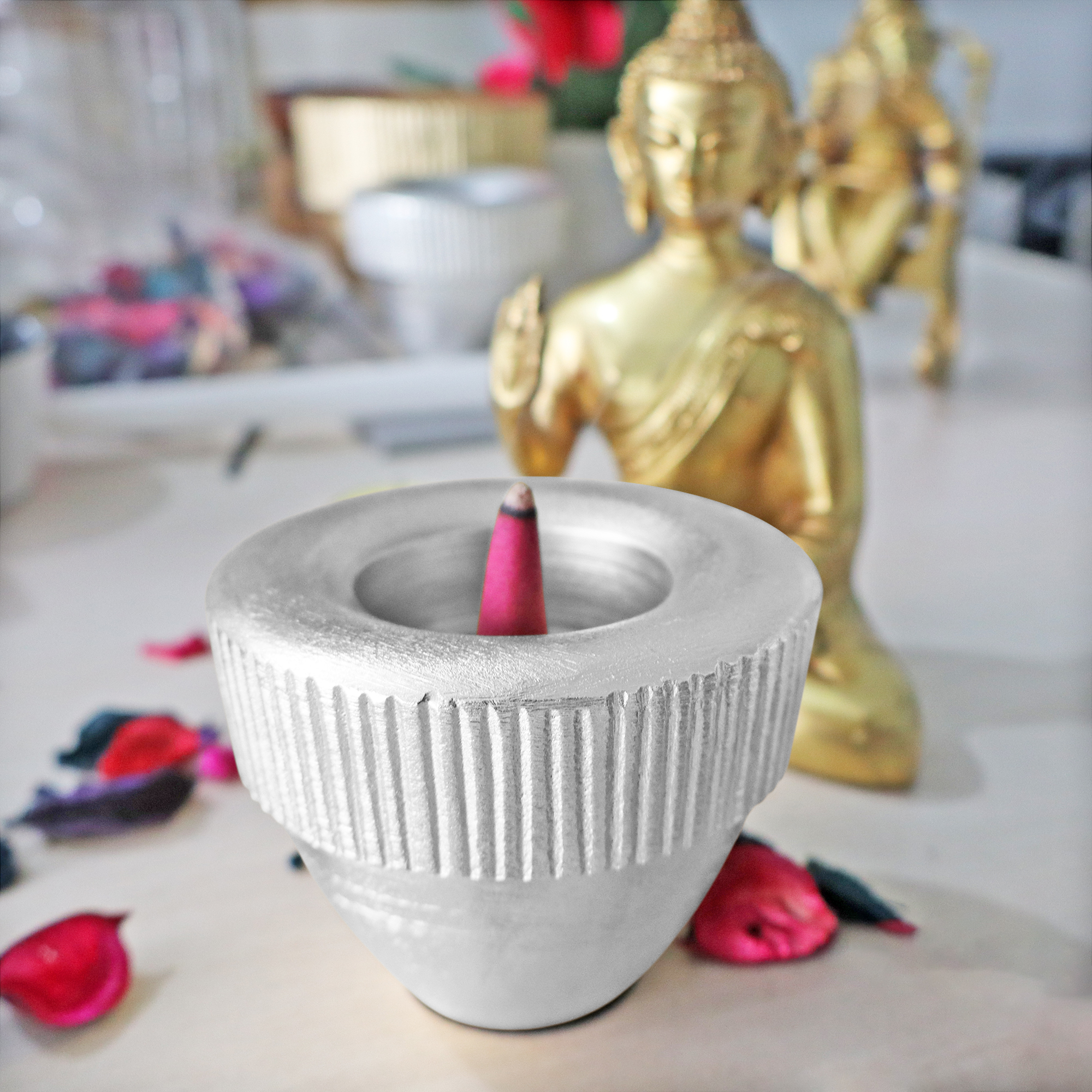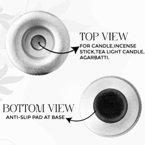 Pure Source India Decorative Metal Candle & Incense Holder – Multipurpose Tealight, Stick & Pillar Candle Stand for Home Décor, Pooja & Gifting (Silver, 3.3 INCH)