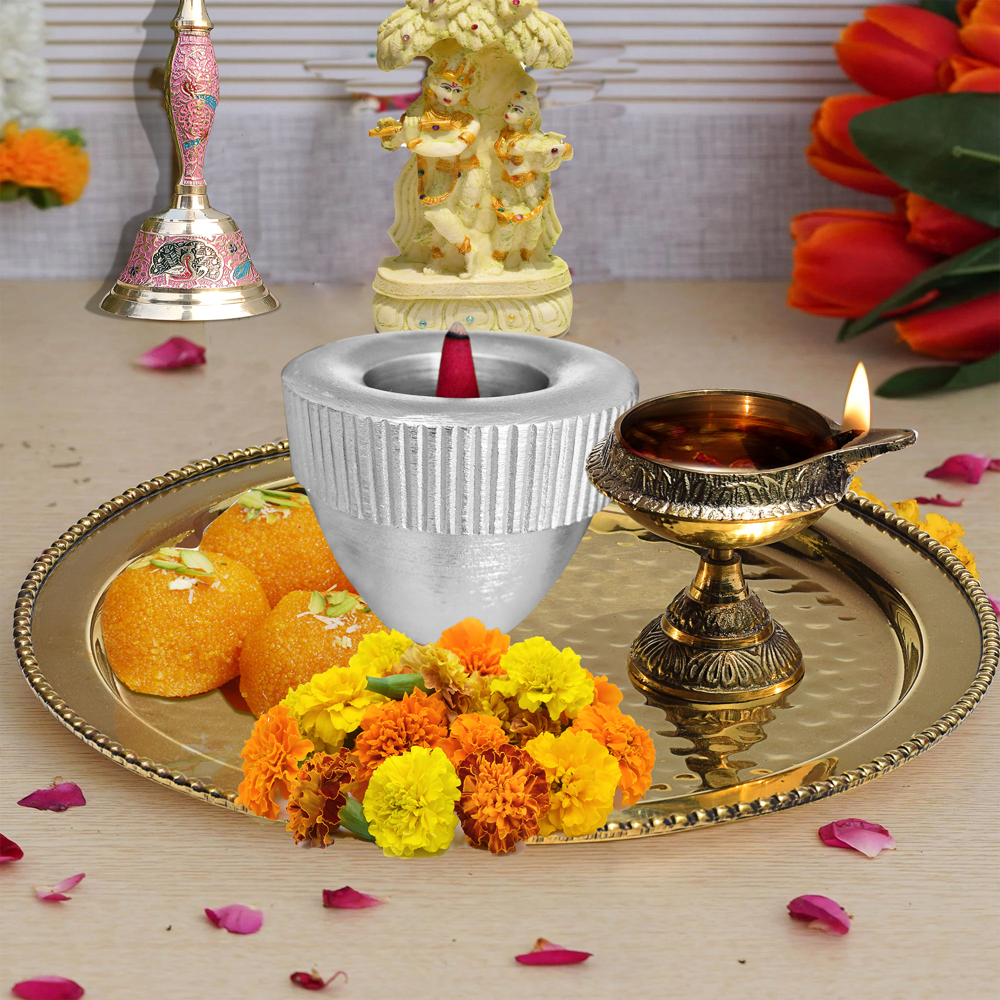 Item: Decorative Metal Candle & Incense Holder – Multipurpose Tealight, Stick & Pillar Candle Stand for Home Décor, Pooja & Gifting
