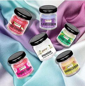 - Pure Source India Jar Scented Candles Gift Set includes 6 fragrance’s: LAVENDER, SANDALWOOD, ROSE, APPLE CENNEMON, LEMON GRASS, JASMINE.
