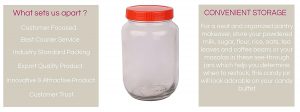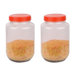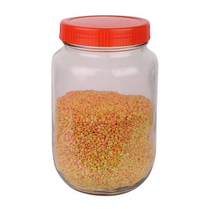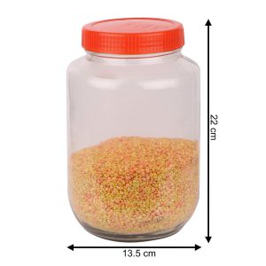 Glass jar container round shape , size is – 8 inch about height and 5 inch about dia ,which can contain about More than 1 KG Of any kitchen related items like sugar, pulse , tea leafs etc… . this jar is coming with a cap which is air tight and rust proof to avoid any type of problem in the item you store in the same , it’s completely rust proof and safe to store you food items .