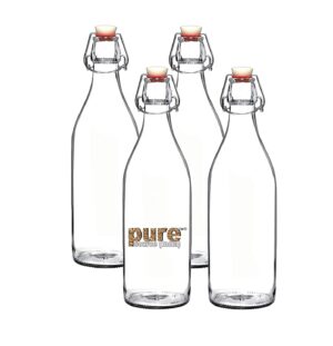 Pure Source India Glass Water Bottle, 1000ml, Set of 4, Clear