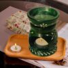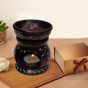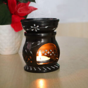 Elevate your space with the calming essence of aromatherapy using our Soapstone Leaf Design Aroma Burner. Hand-carved from 100% natural soapstone, this aroma diffuser features a beautiful leaf pattern that adds an elegant, earthy touch to your home décor. The intricate leaf cutouts not only enhance visual appeal but also allow a soft glow to radiate when a tealight is placed inside.