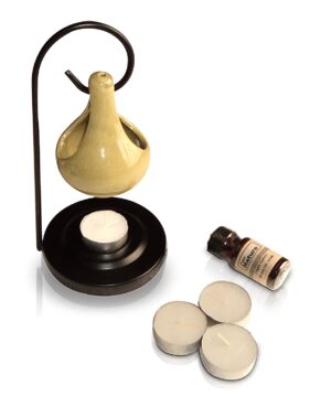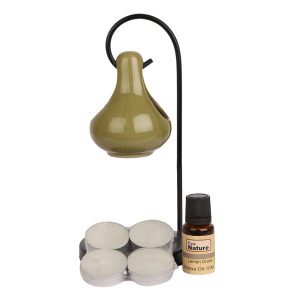 Pure Source India Hanging Aroma Burner Antique Green Premium Color with 10 Ml Lemon Grass Oil and 4 Tea Lights candle Smokeless quality .