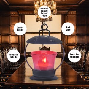 Pure Source India Hard Metal Tealight Holder Hanging Lantern(5.5 Inch X 4.75 Inch) | tealight Glass Holder | Home Decor Gift Items | Anniversary Birthday Decoration Items, 1 Piece, Red
