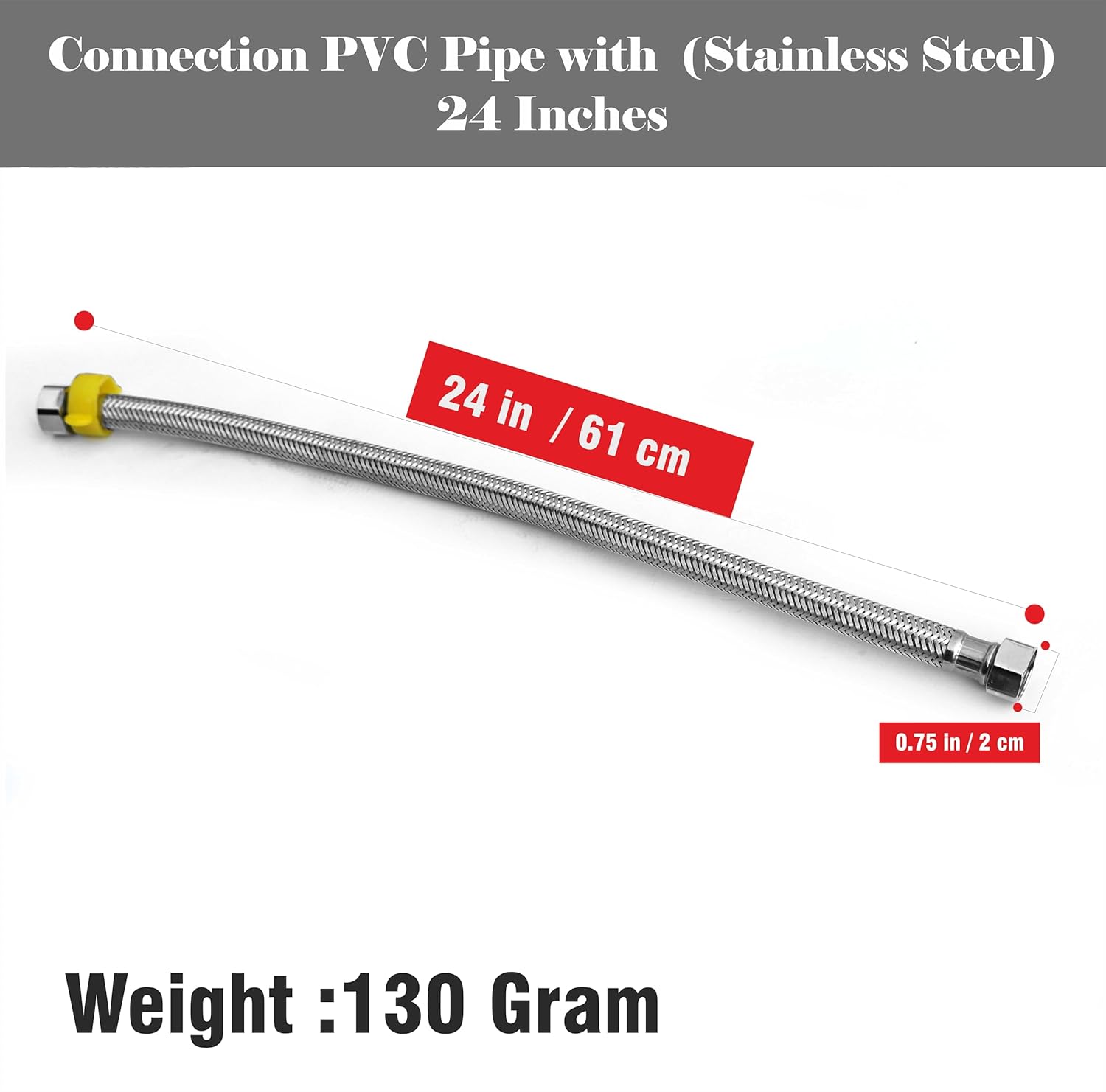 Ensure secure and efficient water connections with this pair of stainless steel braided flexible hoses. Ideal for geysers, basins, faucets, and other plumbing fixtures, these hoses are designed for durability, flexibility, and reliable performance. The outer braided layer resists corrosion and kinking, while the inner lining and precision fittings ensure a leak-proof connection. Perfect for residential and commercial applications, this set is a must-have for every home.