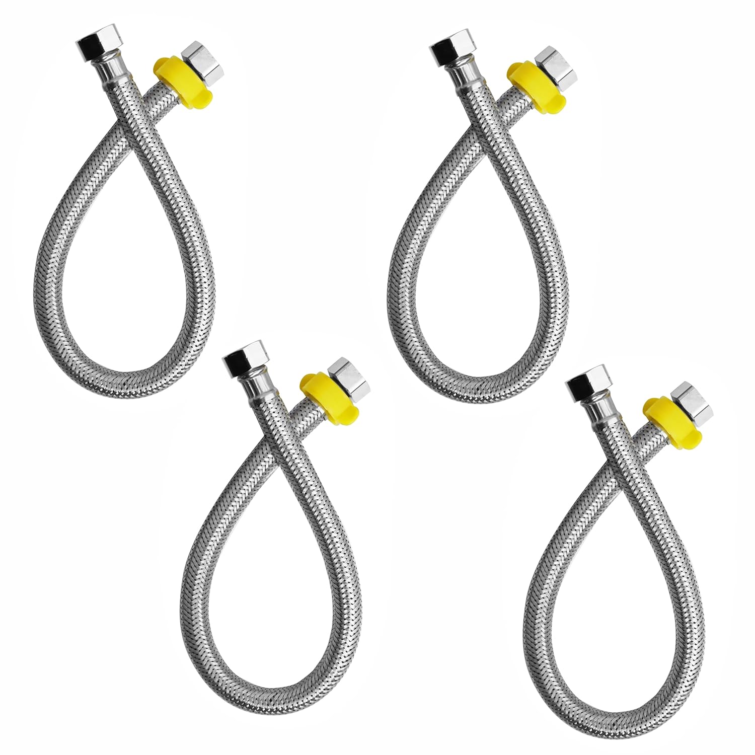 Ensure secure and efficient water connections with this pair of stainless steel braided flexible hoses. Ideal for geysers, basins, faucets, and other plumbing fixtures, these hoses are designed for durability, flexibility, and reliable performance. The outer braided layer resists corrosion and kinking, while the inner lining and precision fittings ensure a leak-proof connection. Perfect for residential and commercial applications, this set is a must-have for every home.