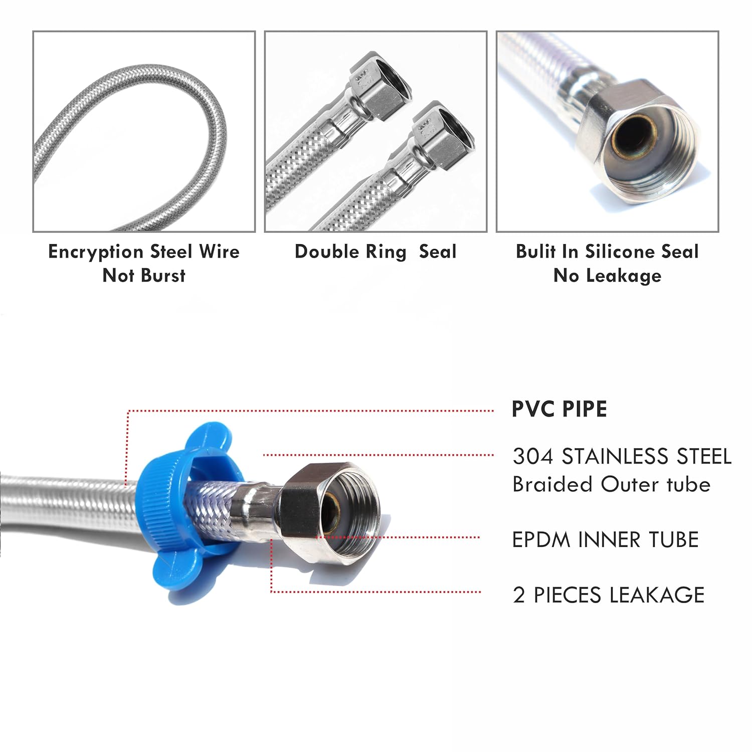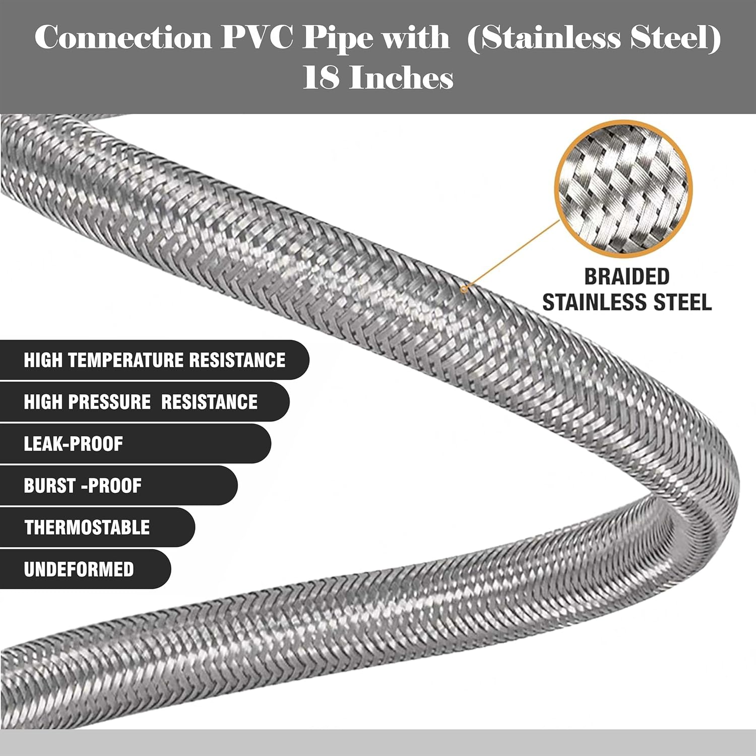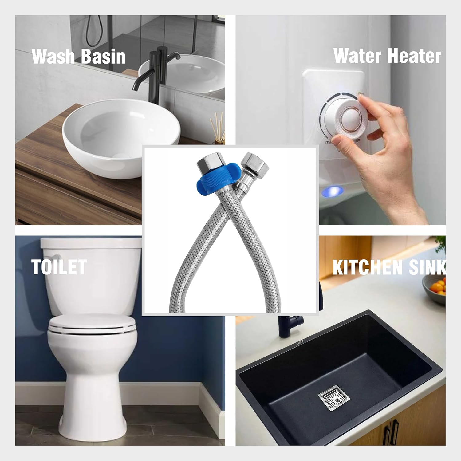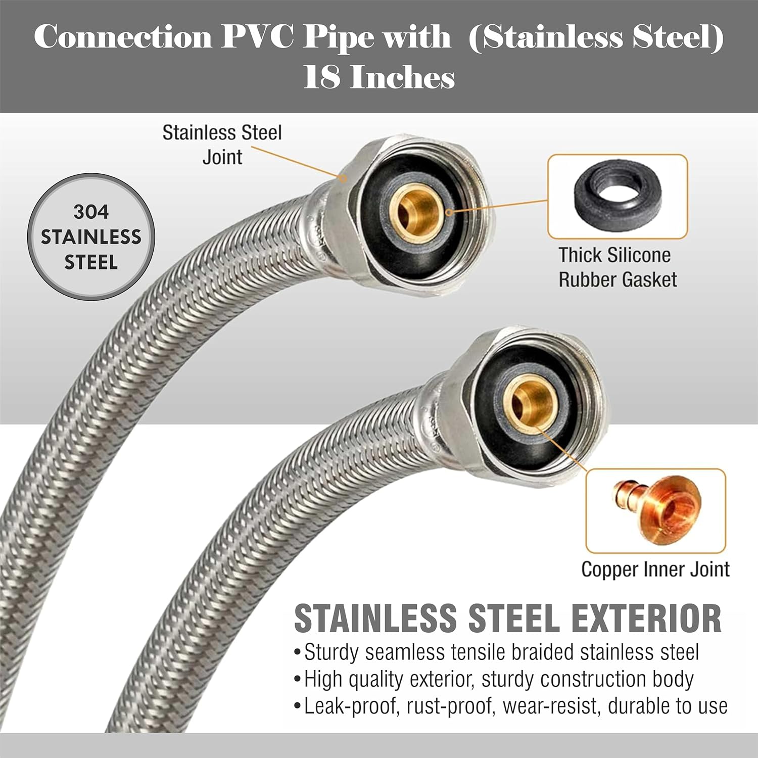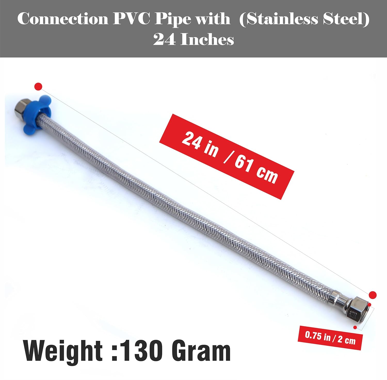 Upgrade your bathroom and kitchen plumbing with this PVC Coated Heavy-Duty Stainless Steel Connection Pipe. Designed for long-lasting durability, it features a strong stainless steel body with a protective PVC outer coating, making it rust-proof, corrosion-resistant, and ideal for hot and cold water supply. With heavy brass end fittings and a leak-proof design, this pipe ensures a secure and hassle-free connection between your geyser, wash basin, or faucet. Flexible yet strong, it can withstand high water pressure and temperature, perfect for both domestic and commercial use.