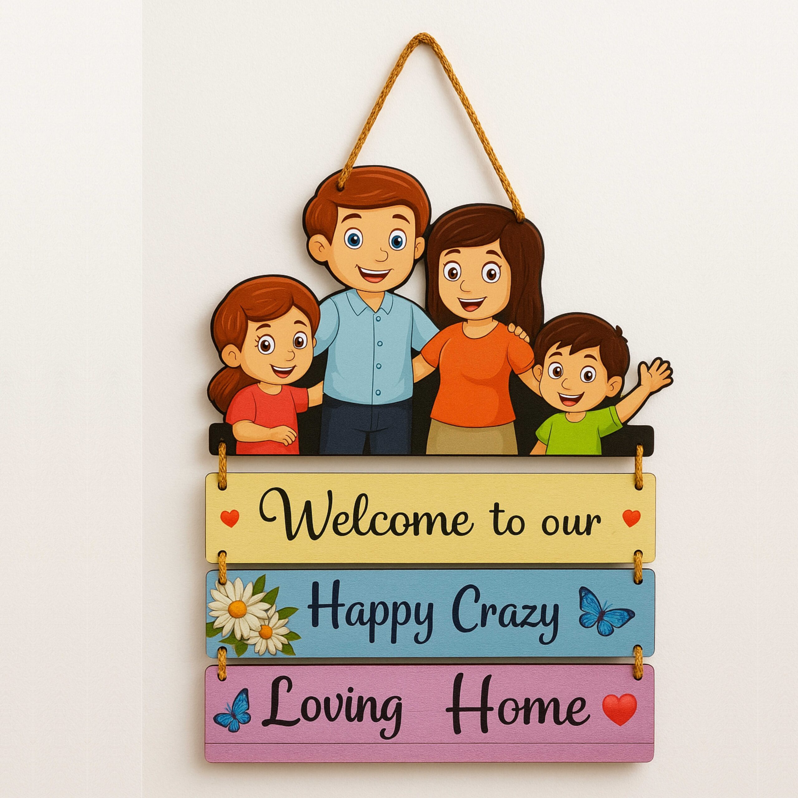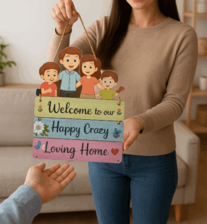 • MDF wooden wall hangings are a stylish and durable décor option designed to add charm to any living space. MDF is made by compressing wood fibers with resin, resulting in a smooth, strong, and lightweight material perfect for decorative signs and plaques.