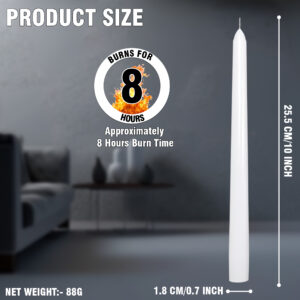 • Item: Long White Taper Candles | Dripless Candlesticks |10-Inch Tall | 8 Hour Clean Long Burning |Party and Special Occasions | (White)