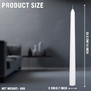 Elevate your ambiance with these elegant 14-Inch Long Taper Candles, perfect for adding a sophisticated touch to any setting. Crafted for a clean, slow, and even burn, these slender candles are ideal for romantic dinners, weddings, religious ceremonies, or everyday home decor. Their long, tapered design fits most standard candle holders and complements both modern and traditional interiors. Whether you’re setting the mood for a special evening or adding grace to your table centerpiece, these tall taper candles create a warm and timeless glow that never goes out of style.
