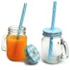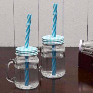 Elevate your beverage experience with this charming mason jar drinking mugs. Each glass features a sturdy handle for comfortable grip and comes topped with an attractive blue and white striped lid. The included matching blue straws add both style and functionality, perfect for enjoying your favourite cold drinks, smoothies, or iced beverages. These classic mason jar-style mugs bring a touch of vintage charm to your kitchen collection while being thoroughly practical for everyday use. The wide mouth design makes it easy to add ice cubes, fruit slices, or other garnishes to your drinks. The secure screw-on lids help prevent spills and splashes, making these mugs ideal for both indoor and outdoor entertaining. Whether you’re serving refreshing lemonades in summer or creative cocktails at a party, these mason jar mugs make every drink feel special. They’re also great for serving trendy layered desserts or parfaits. Hand washing is recommended to maintain the clarity of the glass and longevity of the lids.