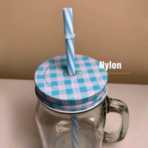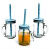 Elevate your beverage experience with this charming mason jar drinking mugs. Each glass features a sturdy handle for comfortable grip and comes topped with an attractive blue and white striped lid. The included matching blue straws add both style and functionality, perfect for enjoying your favourite cold drinks, smoothies, or iced beverages. These classic mason jar-style mugs bring a touch of vintage charm to your kitchen collection while being thoroughly practical for everyday use. The wide mouth design makes it easy to add ice cubes, fruit slices, or other garnishes to your drinks. The secure screw-on lids help prevent spills and splashes, making these mugs ideal for both indoor and outdoor entertaining. Whether you’re serving refreshing lemonades in summer or creative cocktails at a party, these mason jar mugs make every drink feel special. They’re also great for serving trendy layered desserts or parfaits. Hand washing is recommended to maintain the clarity of the glass and longevity of the lids.