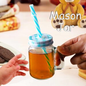 Pure Source India Mason Jar Drinking Mugs with Handle, Blue Striped Lid and Reusable Straw, Perfect for Kid’s Smoothies, Juices, Iced Coffee, Hot and Cold Beverages (Set of 2)