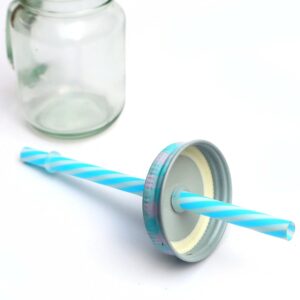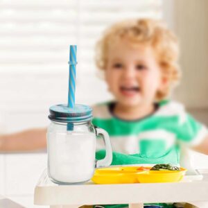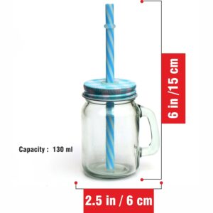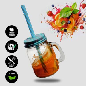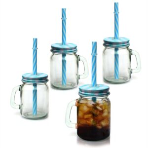 Elevate your beverage experience with this charming mason jar drinking mugs. Each glass features a sturdy handle for comfortable grip and comes topped with an attractive blue and white striped lid. The included matching blue straws add both style and functionality, perfect for enjoying your favourite cold drinks, smoothies, or iced beverages. These classic mason jar-style mugs bring a touch of vintage charm to your kitchen collection while being thoroughly practical for everyday use. The wide mouth design makes it easy to add ice cubes, fruit slices, or other garnishes to your drinks. The secure screw-on lids help prevent spills and splashes, making these mugs ideal for both indoor and outdoor entertaining. Whether you’re serving refreshing lemonades in summer or creative cocktails at a party, these mason jar mugs make every drink feel special. They’re also great for serving trendy layered desserts or parfaits. Hand washing is recommended to maintain the clarity of the glass and longevity of the lids.