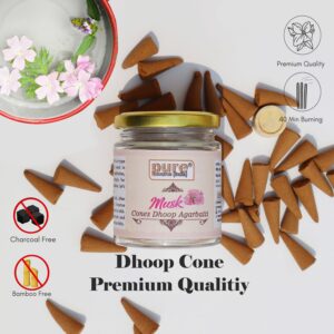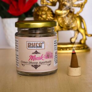Pure Source India Pack of 50 Natural Dhoop Cones with 50gm Glass Jar| Organic Cones | Dhoop Cones for Pooja (Fragrance-Musk)