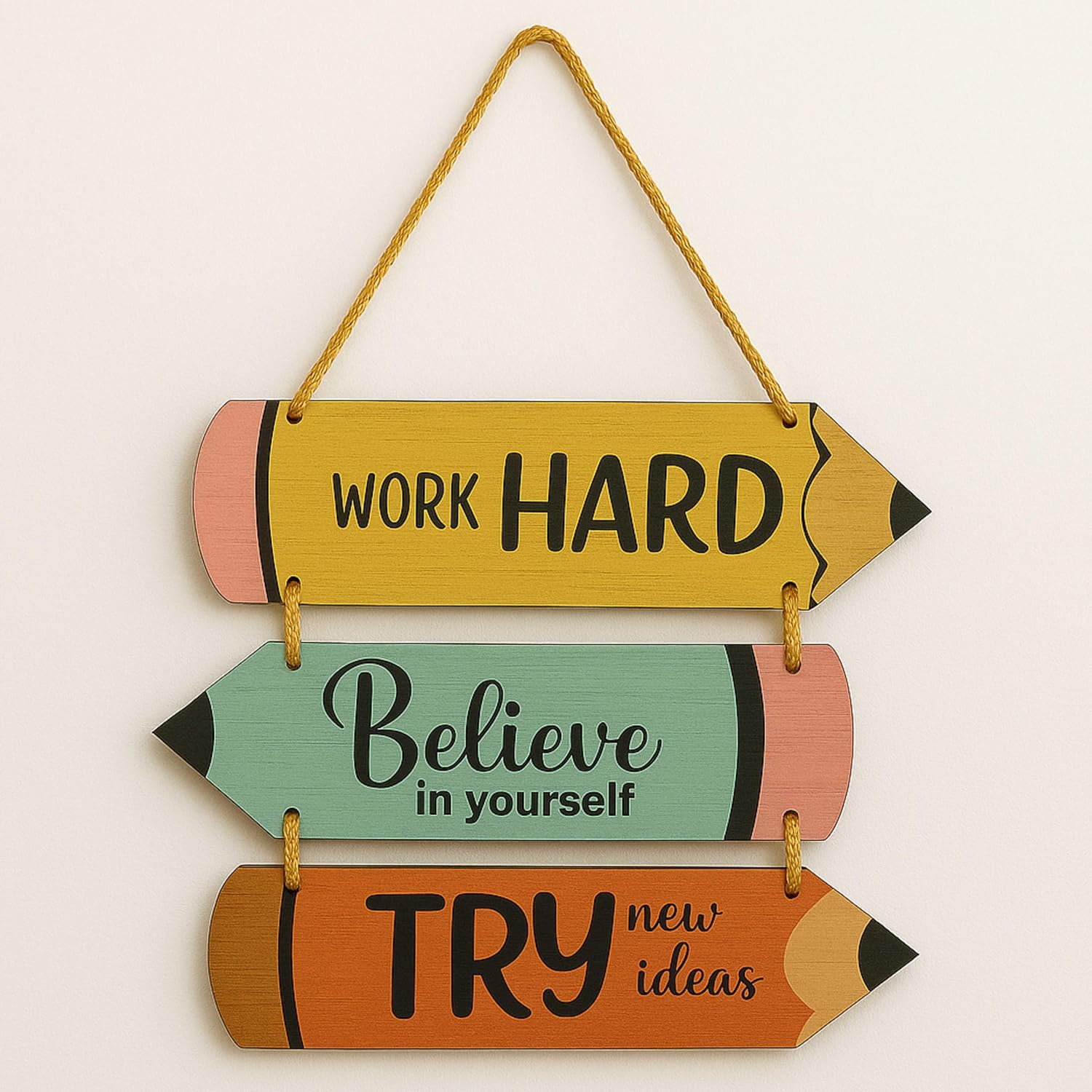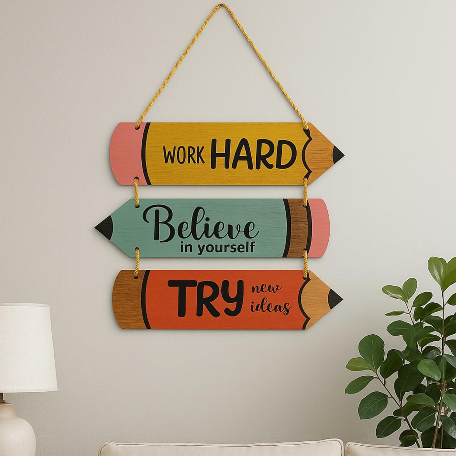 Crafted from MDF wood with durable printing and a sturdy rope for hanging, this motivational wall plaque is both stylish and long-lasting. A perfect decorative piece and an ideal gift option for family, friends, and colleagues.