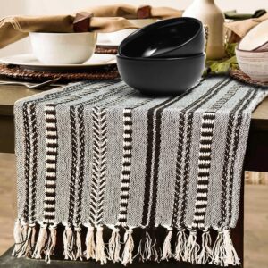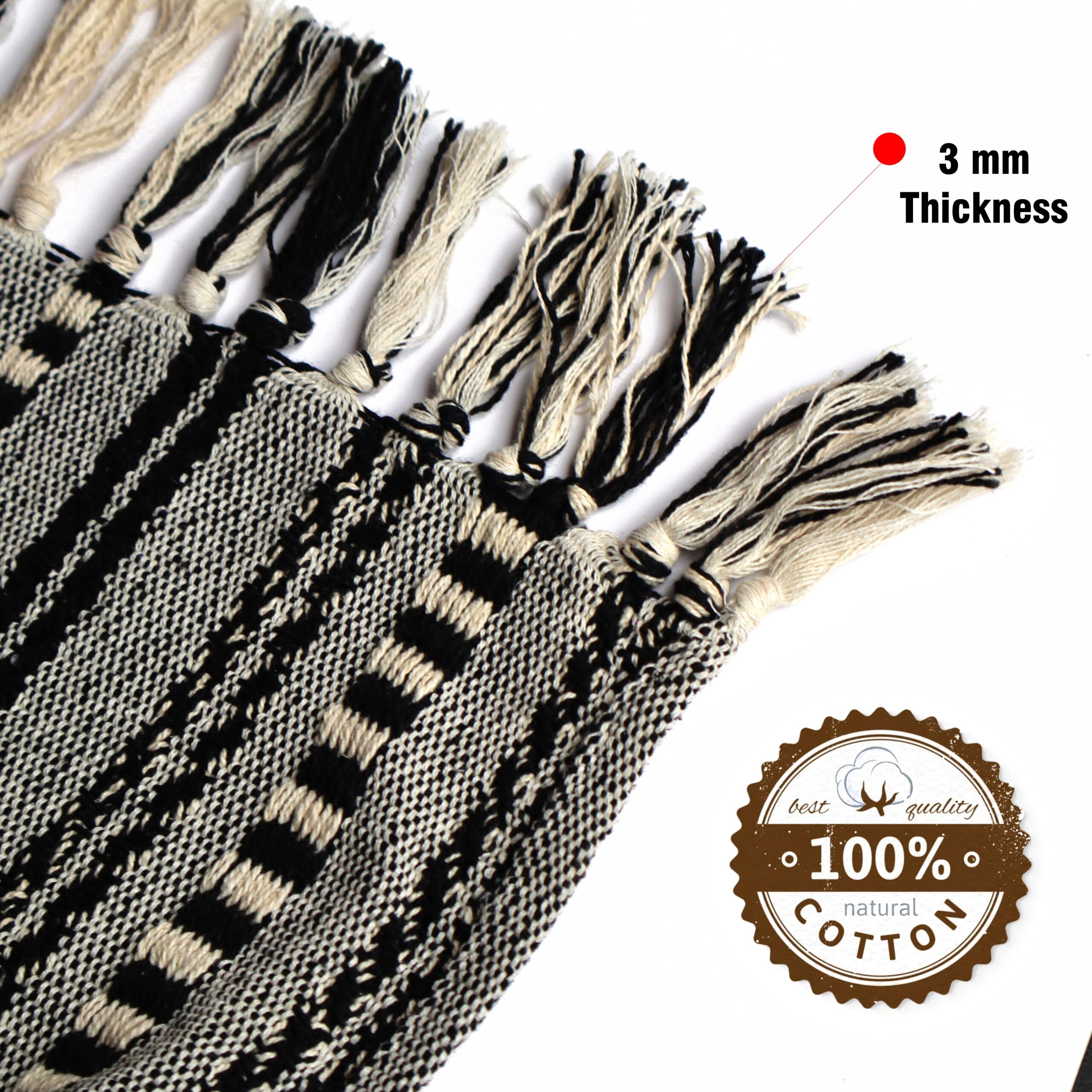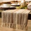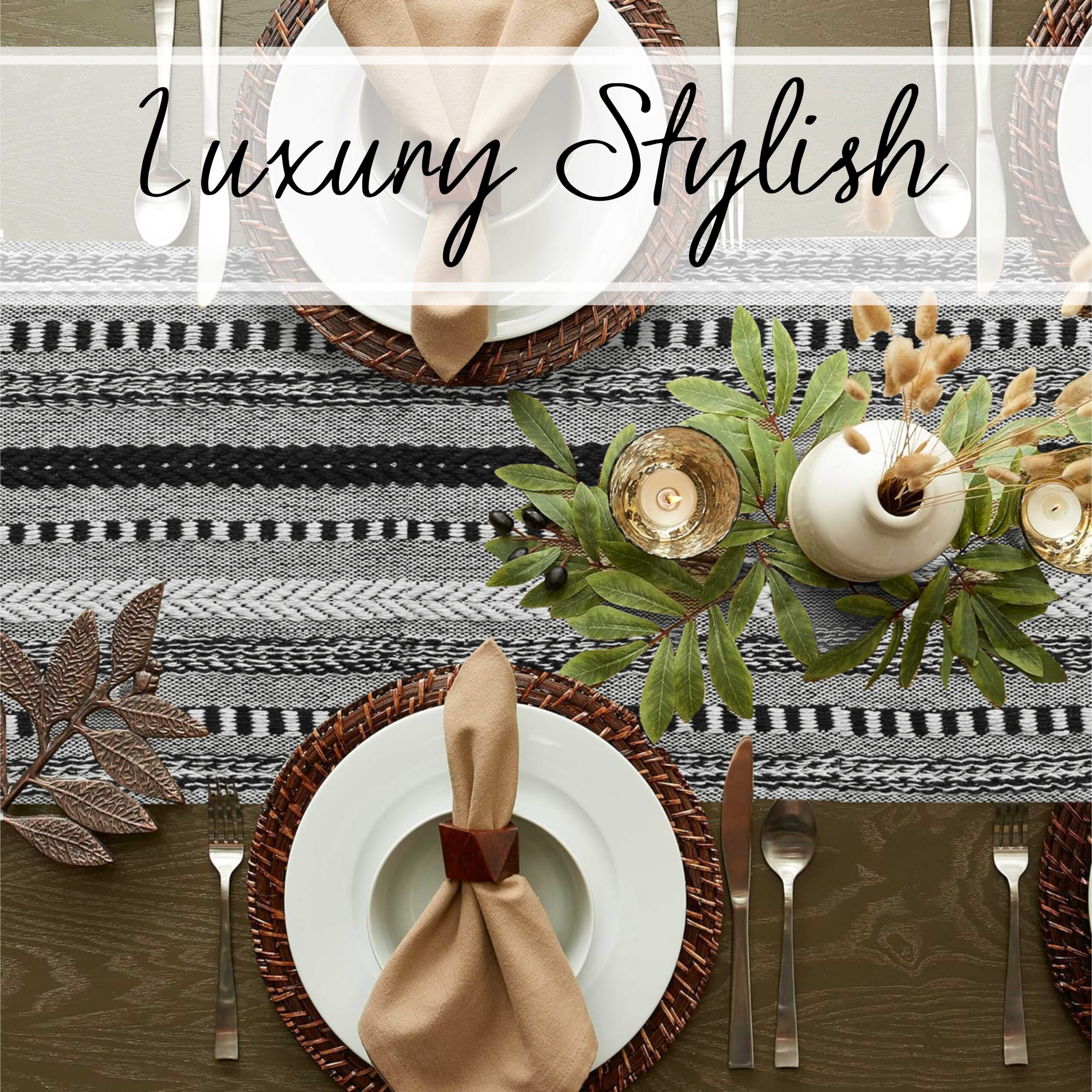 Add a warm and earthy touch to your dining space with this beautifully woven cotton table runner. Featuring a natural color palette of beige, cream, and brown tones with alternating braided and stitched stripes, this table runner is perfect for rustic, farmhouse, or boho-themed interiors. The fringed tassel edges add a charming handcrafted finish, making it a stylish yet subtle addition to everyday meals, festive occasions, or seasonal decor. Made from 100% cotton, it is both durable and easy to maintain—perfect for family gatherings, holidays, or cozy dinners.