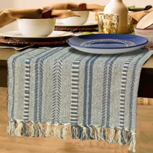 Add a warm and earthy touch to your dining space with this beautifully woven cotton table runner. Featuring a natural color palette of beige, cream, and brown tones with alternating braided and stitched stripes, this table runner is perfect for rustic, farmhouse, or boho-themed interiors. The fringed tassel edges add a charming handcrafted finish, making it a stylish yet subtle addition to everyday meals, festive occasions, or seasonal decor. Made from 100% cotton, it is both durable and easy to maintain—perfect for family gatherings, holidays, or cozy dinners.