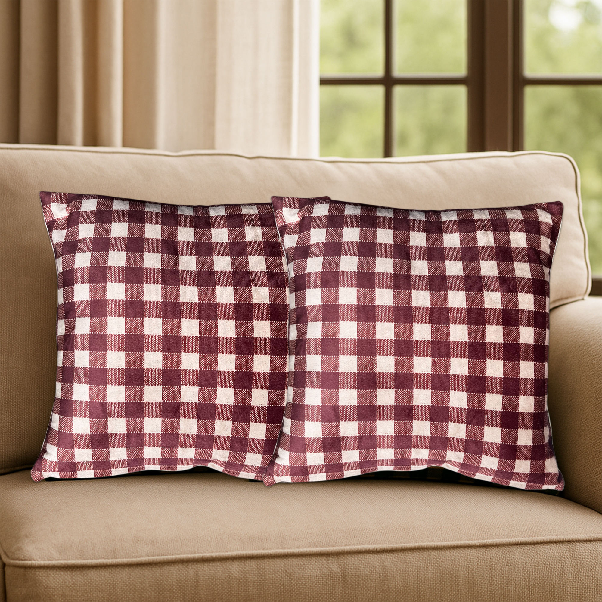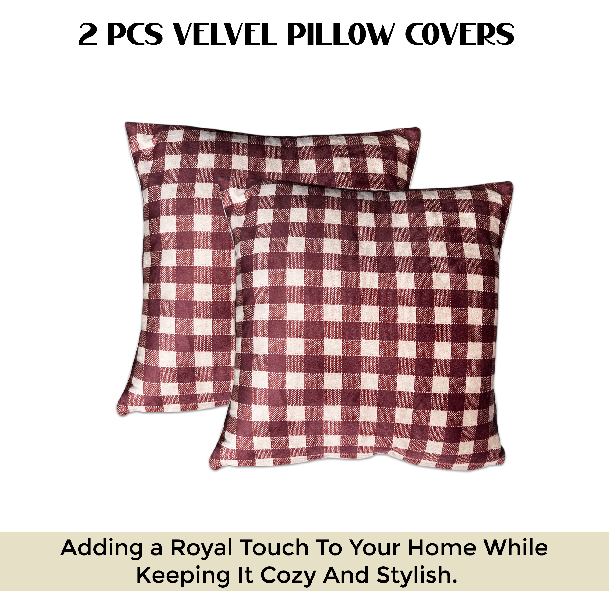 Elevate your home décor with this luxurious velvet cushion cover featuring a stylish check design. Crafted from high-quality velvet fabric, it offers a soft and smooth texture that adds elegance and comfort to your living space. The hidden zipper closure ensures easy use and a neat finish, making it perfect for sofas, beds, chairs, and lounge areas. Whether for daily use or festive occasions, this cushion cover enhances the beauty of your interiors while providing a cozy feel. A must-have decorative accessory for modern and classic homes, and an excellent gift choice for housewarmings, weddings, or festive celebrations.