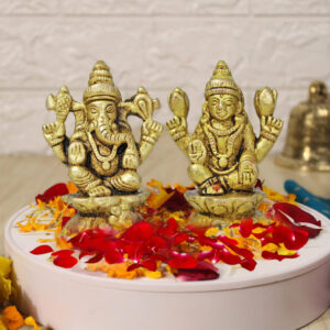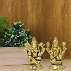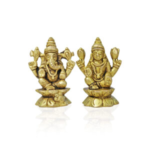 Laxmi and Ganesh brass murtis (idols) are popular in many Hindu homes and temples. They represent two revered deities: Laxmi is the goddess of wealth, prosperity, and abundance. She is often depicted with four arms and seated on a lotus flower, symbolizing purity and beauty. Ganesh (or Ganesha) is the elephant-headed god of wisdom, knowledge, and new beginnings. He is widely worshipped as the remover of obstacles and is often invoked at the start of new ventures.