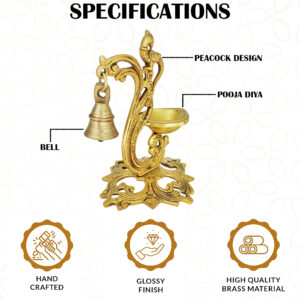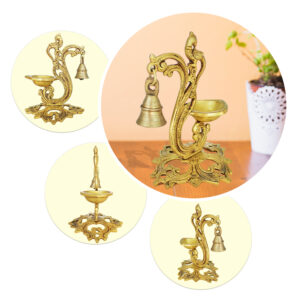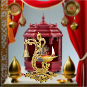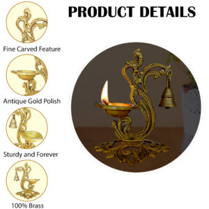 Illuminate your space with timeless elegance using this handcrafted Brass Peacock Diya Lamp. Featuring an intricately carved peacock design, this traditional oil lamp is made from high-quality brass and is perfect for spiritual rituals, Diwali celebrations, and home decor. The elegant shape and antique finish make it a striking centerpiece for your pooja room, mandir, or festive altar. Whether used as a functional diya during puja or as a decorative accent for cultural events, this brass peacock lamp adds a touch of heritage and spiritual charm. Durable, beautifully detailed, and symbolic of prosperity and good fortune, it makes a meaningful gift for weddings, housewarmings, or religious