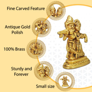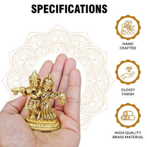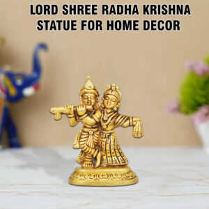 Celebrate the eternal bond of divine love with this exquisitely handcrafted Brass Radha Krishna Idol. Depicting Lord Krishna playing his flute with Radha by his side, this idol symbolizes devotion, harmony, and spiritual love. Made from pure brass, it showcases intricate detailing and traditional craftsmanship, making it a beautiful and sacred addition to your home or temple.