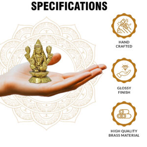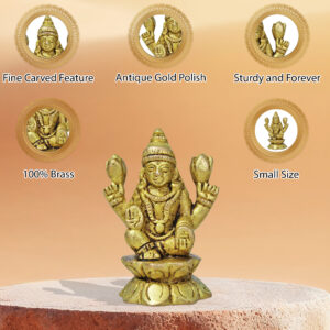 • Item: Pure Brass Small Laxmi Ji Idol (1.6 Inch) Ideal for home temples or work desks (52 gm)