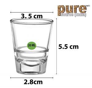 Pure Source India 6-Piece Shot Glass Set is made with premium quality glass imported from Bulgaria. It includes six shot glasses with a capacity of 20ml capacity which can be used to hold, measure and mix a variety of beverages in a safe and hygienic manner. This glassware is designed to withstand extreme temperature change and therefore can also be used to serve chilled beverages. The transparent glasses with their sleek shape look elegant and are dishwasher-safe for convenient washing and maintenance.