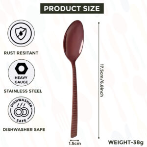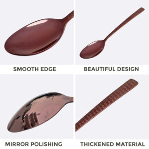 Product Description: Elegant Rose Gold Stainless Steel Dessert Spoon – Modern Tableware Charm Add a touch of sophistication to your dining experience with this stunning rose gold dessert spoon. Crafted from premium stainless steel and finished with a sleek, mirror-polished rose gold coating, this spoon brings elegance and style to every sweet moment. Whether you’re serving cake, ice cream, or mousse, this spoon is the perfect blend of function and fashion.