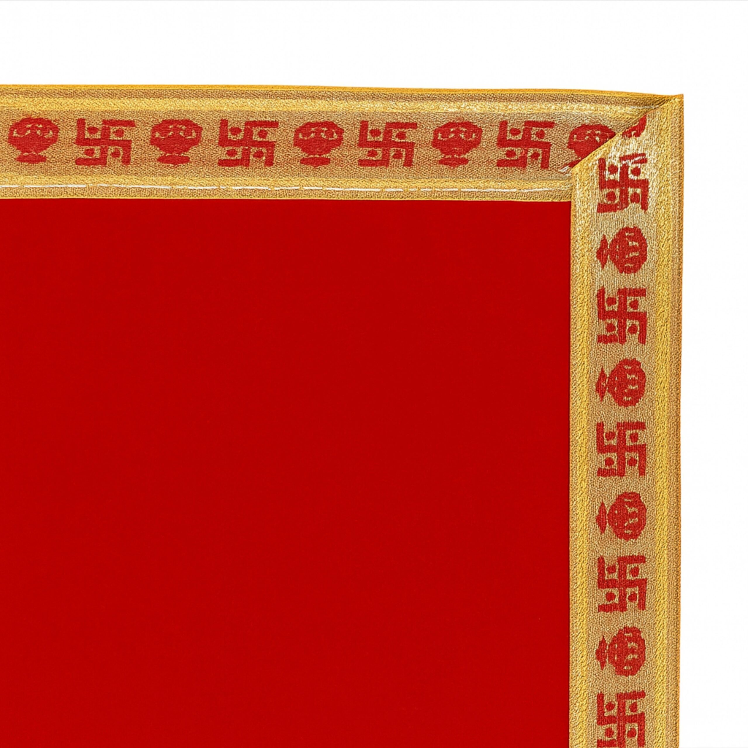 • Sacred Border Design – Decorated with red & golden motifs like Swastik, Kalash, and floral patterns for a traditional look.
