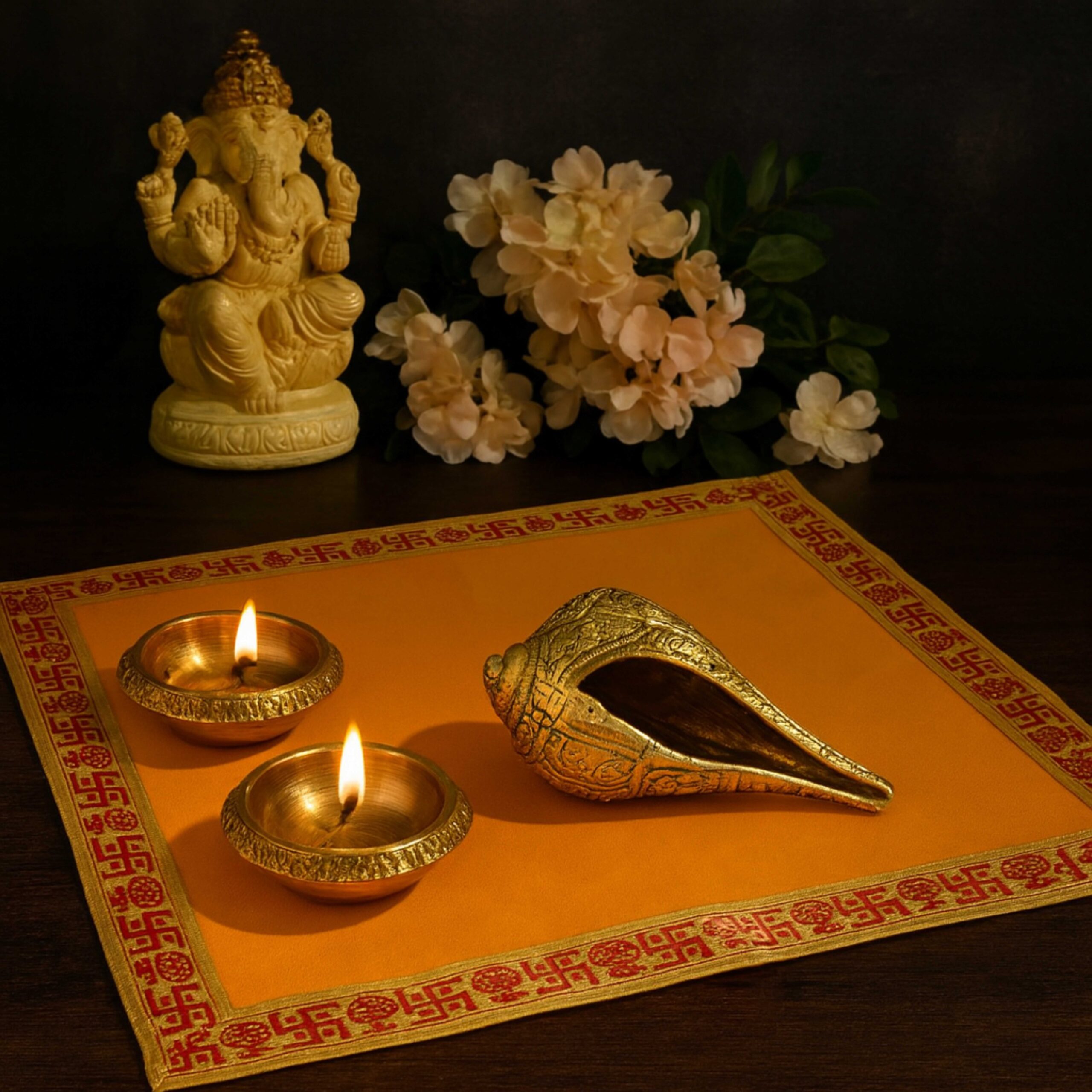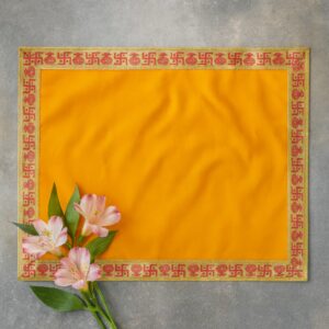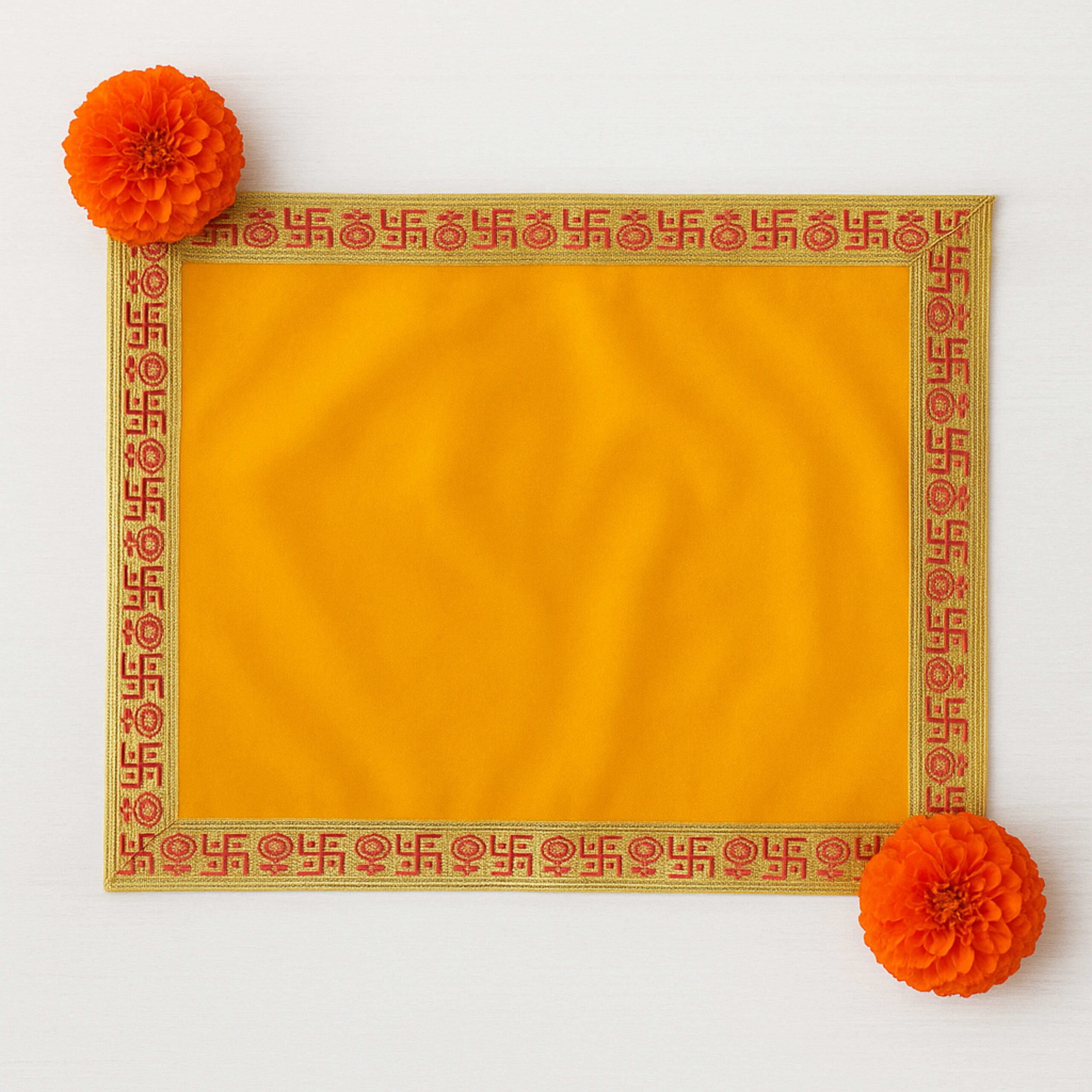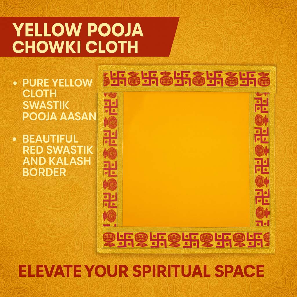 Bring divine energy and elegance to your home temple with this Premium Yellow Pooja Aasan Cloth. Made from soft fabric with a traditional red-golden border, this chowki aasan is perfect for placing under idols, chowki, or pooja thalis during religious rituals. The vibrant yellow color symbolizes purity and positivity, while the sacred designs on the border add a traditional touch. Ideal for daily puja, festivals, and special ceremonies, this multipurpose aasan enhances the spiritual ambience of your mandir.