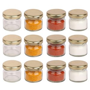 Good quality of Very small glass jar with metal golden color cap , capacity is about 20 to 30 ML , but not for all items , the capacity mejor for ghee , chatni etc….. QUANTITY COMING WITH THIS PACK IS – 36 PCS . NOTE- THIS JAR IS VERY SMALL IN SIZE IT’S JUST 20 GRAM CAPACITY FOR CREAM , GHEE, ETC….