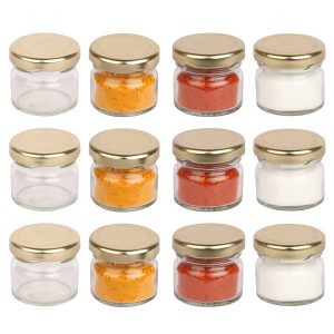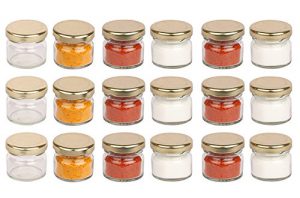 Good quality of Very small glass jar with metal golden color cap , capacity is about 20 to 30 ML , but not for all items , the capacity mejor for ghee , chatni etc….. QUANTITY COMING WITH THIS PACK IS -18 PCS . NOTE- THIS JAR IS VERY SMALL IN SIZE IT’S JUST 20 GRAM CAPACITY FOR CREAM , GHEE, ETC….