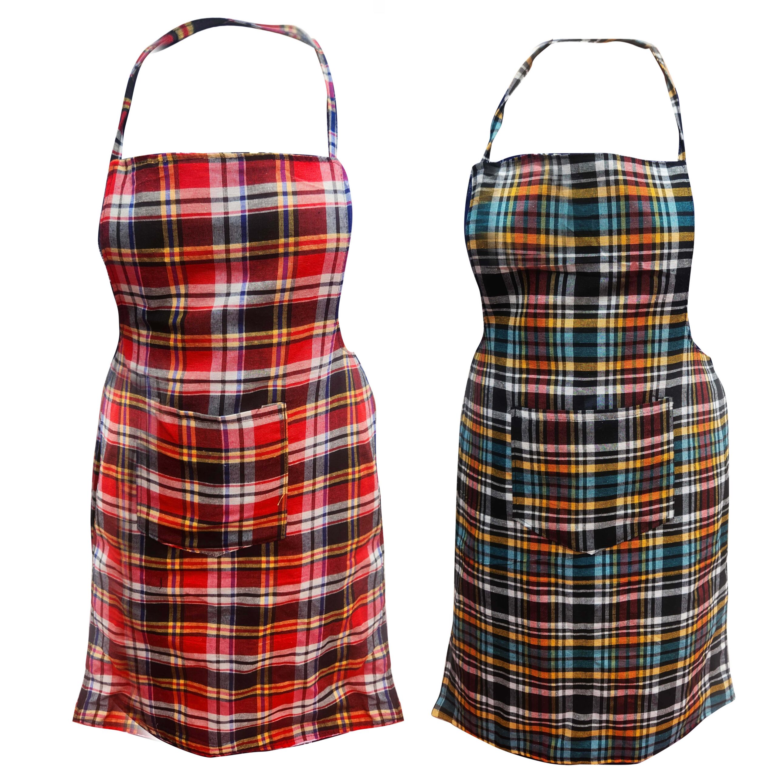 • Item: Waterproof Unisex Kitchen Checkered Design Apron with Front Centre Pocket (Pack of 2)