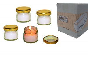 Pure Source India smokeless Scented Mini Jar candles ,Package of 12 Scented jar candles in a self-standing Glass jar With metal gold color cap to keep the fragrance for long time, these quality jar candles you can enjoy the warm glow of a fine candle while enjoying the maximum safety of the same. If you€re a restaurant, party planner or just enjoy dining to the romantic touch of candle, these quality long burning will deliver the ultimate and lasting radiation of warmth. made with a special technique to prevent early burn out of your the candle. these candles are an efficient and inexpensive, cost effective form of candle lighting for your ritual and religious ceremonies or any type of celebrations and Holidays. “WARNING” Never leave burning candle unattended. Keep 2 inches between candles. Put candles on fireproof objects only.