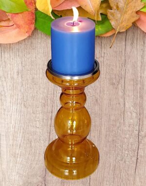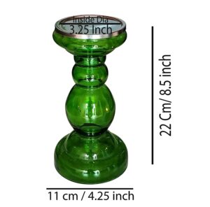 Perfectly sized for dinner conversations, each set contains candle stand of 8.5 inches. Ideal for a wide variety of design this premium glass colored candle pillar stand is well for organic interiors for your living room décor items.